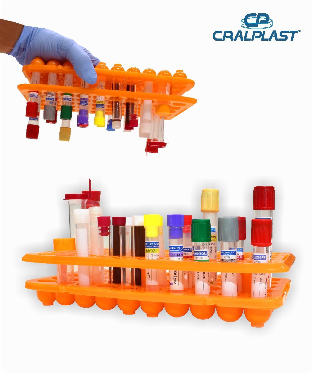 Suporte revestido em PVC, ideal para acomodar placas de Petri 90x15.